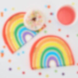 16 kpl ihania servettejä sateenkaaren muodossa ja väreissä, kullanvärisin reunoin. Servetit ovat 2-kerroksisia ja n. 20 x 15 cm.