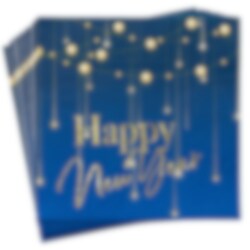 16 kpl tummansinisiä ylellisiä servettejä, joissa on hieno kullalla folioitu teksti ''Happy New Year' ja muita hienoja yksityiskohtia. Servetit ovat 3-kerroksisia, ja niiden koko on 33 x 33 cm taitettuna.