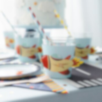 Luovat DIY-mukikoristeet lentokoneteemalla. Pakkaus sisältää kuusi säädettävää pahvista koristetta. Täydellisiä mukien tai juomalasien koristeluun. Tee jokaisesta juomasta osa juhlateemaa. Koko: 23 x 9,5 cm.