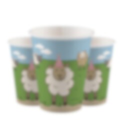 8 kpl pahvimukeja suloisilla maatilan eläinten kuvioilla – täydellisiä maatilateemaisiin juhliin. Mukit ovat noin 10 cm korkeita ja tilavuudeltaan 266 ml, mikä tekee niistä käytännöllisen ja tyylikkään lisän kattaukseen.