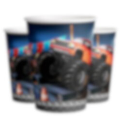 8 kpl. pahvimukeja hienoilla Monster Truck -kuvioilla. Mukit ovat noin 10 cm korkeita ja niihin mahtuu noin 250 ml.