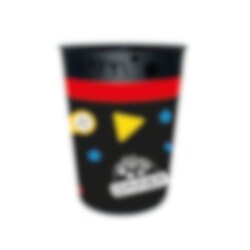 Gaming Party -muki kovasta muovista. Mukia voidaan käyttää uudelleen ja uudelleen ja se kestää myös konepesun. Muki on hauska ja hieman erilainen vaihtoehto tavalliselle juhlapussille ja sen voi täyttää karkilla, naposteltavilla tai lelulla. Parasta siinä on, että vieraat saavat viedä mukin kotiin muistoksi.