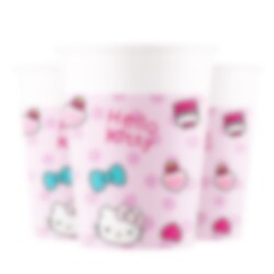 8 pahvikuppia, joissa on ihana Hello Kitty -kuva ja muita pieniä yksityiskohtia.