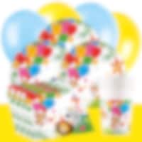 8 kpl pahvimukeja, joissa on värikkäitä viidakon eläimiä ja ilmapalloja. Mukit ovat 10 cm korkeita ja niiden tilavuus 200 ml.