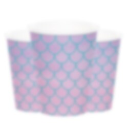 8 kpl vaaleanpuniaiset paperimukejaen. Täydellinen tarvike merenneitoteemaisiin juhliin. Mukien korkeus on noin 10cm ja tilavuus 250 ml.