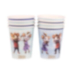 8 kpl. pahvimukeja sinisen sävyissä hauskoilla Musse ja Helium -kuvioilla. Täydellinen kaikenlaisille juomille juhlissa!