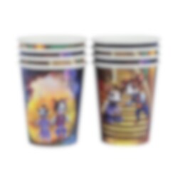 8 kpl pahvimukeja Musse ja Helium -kirjasarjasta tutuilla leikkisillä ja värikkäillä hahmoilla.