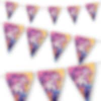Värikäs viirinauha pahvista taianomaisilla My Little Pony -aiheilla. Täydellinen koriste, joka muuttaa juhlatilan lumoavaksi maailmaksi. Viirinauha on noin 2 metriä pitkä.