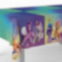 Värikäs muoviliina taianomaisilla My Little Pony -kuvilla. Täydellinen lumoavan juhlatunnelman ja leikkisän kattauksen luomiseen täynnä ystävyyttä ja iloa! Pöytäliina on kooltaan 120 x 180 cm ja se sopii useimpiin pöytiin.