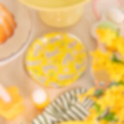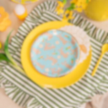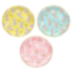 Kata pääsiäisen juhla-ateria näillä ihanilla lautasilla, jotka on koristeltu suloisilla pupuilla, porkkanoilla ja kukilla. Kolme eri pastelliväriä luovat leikkisän ja keväisen tunnelman. Kiiltävät kultaiset yksityiskohdat lisäävät niihin elegantin säväyksen.