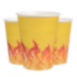 Kun juhlat kuumenevat, tarvitaan jotain virkistävää – ja mikä sopisikaan paremmin kuin tarjoilla juomat näistä liekehtivistä pahvimukeista? Mukit ovat noin 9,7 cm korkeita ja tilavuudeltaan 270 ml.