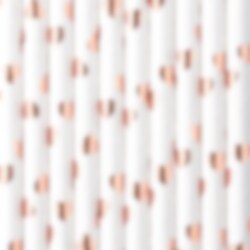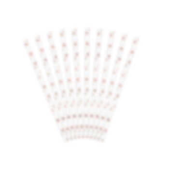 10 kpl hienoja valkoisia paperipillejä jossa on ruusukullan värisiä sydämiä. Hienot pillit sopivat erinomaisesti esimerkiksi lastenjuhliin, vauvajuhliin tai muihin juhliin.