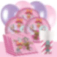 Valmis juhlasetti, joka sisältää lautaset (23 cm), pahvimukit (200 ml) ja servetit (33 x 33 cm) 8, 16 tai 24 hengelle. Pakettiin kuuluu lisäksi 10 kpl violetteja ja 10 kpl vaaleanpunaisia ilmapalloja sekä vaaleanpunainen muovinen pöytäliina (137 x 274 cm). 24 hengen setti sisältää kaksi pöytäliinaa. Täydennä settiä juhlapusseilla, lahjarasioilla, karkeilla, leluilla tai leivontatarvikkeilla.