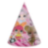 6 juhlahattua vaaleanpunaisen sävyissä kuvalla coolista Glitterati-jengistä LOL Surpisesta. Hauska lisä LOL Surprise -aiheisiin juhliin. Hatut ovat n. 19 cm korkeita ja asetetaan kuminauhalla.