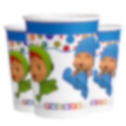 8 kpl pahvimukeja ihanilla Pocoyo-kuvilla. Mukit ovat noin 10 cm korkeita ja tilavuudeltaan noin 200 ml – täydellisiä pienille vieraille!