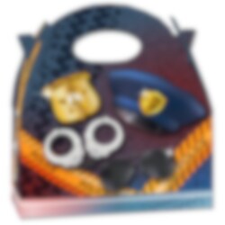 Tämä juhlarasia poliisiteemalla on täydellinen pienille etsiville ja rosvojen jahtaajille! Täytä se herkuilla ja yllätyksillä. Valmistettu pahvista, helppo koota. Mitat 20 x 16 cm. Myydään yksittäin.