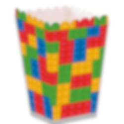 Täytä tämä värikäs rakennuspalikkateeman popcornrasia popcorneilla tai muilla herkuilla! Valmistettu pahvista, helppo taittaa kokoon. Mitat 12 x 5 cm. Myydään yksittäin – täydellinen pienille rakentajille!