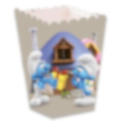Tarjoile smurffimaisia herkkuja tästä ihanasta popcornrasiasta Smurffikuvioinnilla! Valmistettu pahvista, helppo taittaa kokoon. Sen mitat ovat 12 x 5 cm, joten se on täydellinen popcornille tai muille herkuille. Myydään yksittäin.