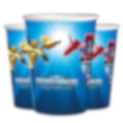 8 kpl pahvimukeja, joissa on toimintatäytteisiä kuvia Transformersista. Mukit ovat noin 10 cm korkeita ja tilavuudeltaan noin 200 ml – täydellisiä eeppisten juhlien juomille!