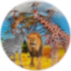 8 kpl lautasia kuvissa kauniita sademetsän ja savannan eläimiä. Lautasten läpimitta on n. 23 cm.