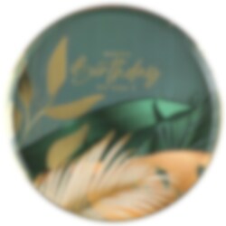 10 kpl. ylellisiä pahvilautasia lehtikuvioilla vihreän ja kullan sävyissä tekstillä "Happy Birthday to you!". Lautasten halkaisija on 22,5 cm.
