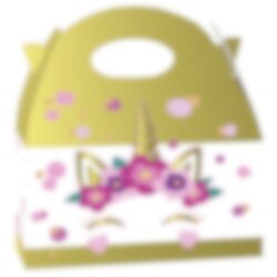 Tämä yksisarvisjuhlarasia tuo maagisuutta juhliin! Täytä se karkilla ja yllätyksillä unohtumattoman kokemuksen aikaansaamiseksi. Helppo taittaa kokoon, valmistettu pahvista. Mitat 20 x 16 cm. Myydään yksittäin.
