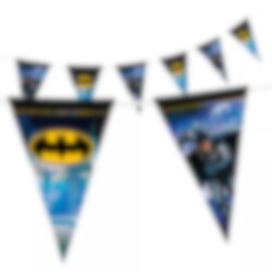 Luo täydellinen tunnelma Batman-juhliisi tällä 5 metriä pitkällä pahvista valmistetulla lippuviirinauhalla. Molemmin puolin kuvioidut 19 x 28 cm kokoiset liput vie vieraasi suoraan Gotham Cityyn.
