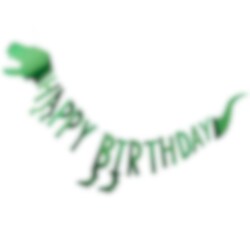 Makea viiri vihreällä tekstillä "Happy Birthday" ja kuvat eri dinosauruksista. Ripusta seinälle dinosaurusteemaisissa juhlissa. Viiri on n. 2 metriä pitkä.