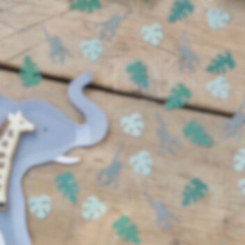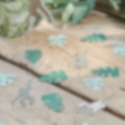 Tyylikäs konfettisekoitus, jossa on paperisia apinoita ja vihreitä palmunlehtiä. Koristele pöytä näillä viidakkojuhliin. Sopii täydellisesti yhteen muiden Let's Go Wild -teeman tuotteidemme kanssa! Pakkaus sisältää noin 13 grammaa. Tuote ja pakkaus ovat kierrätettäviä ja FSC-sertifioituja.