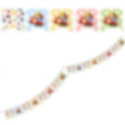 Ihastuttava viiri Babblarna-lastenjuhlien koristeluun. Viiri on 3 metriä pitkä ja siinä on 16 kpl värikkäitä Babblarna-aiheisia viirejä. Valmistettu pahvista.