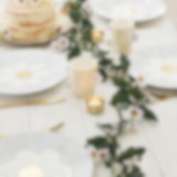 Ihastuttava tekokukkaköynnös, jossa on päivänkakkara-kukkia ja vihreää lehvistöä. Köynnös on kaunis ripustettavaksi sekä osaksi juhlakattausta. Köynnös on 180 cm pitkä.