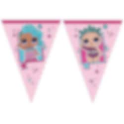 Vaikuttava lippuköynnös muovista upeilla väreillä ja teemalla Cosmic Queen ja Splash Queen LOL Surprisen The Glitterati-ryhmästä. Hieno koriste huoneeseen, kun on synttäreiden aika. Köynnös on noin 2,3 metriä pitkä ja siinä on kuvat molemmilla puolilla.