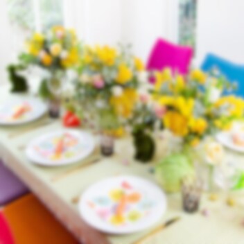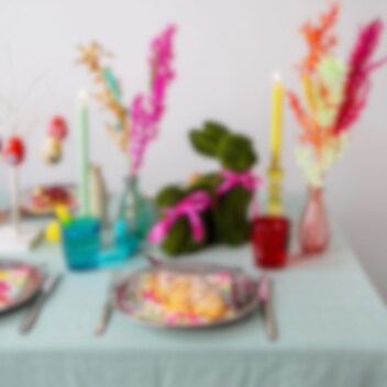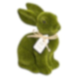 Suloinen kani, joka on peitetty ruohoa muistuttavalla materiaalilla. Koristele pöytä tällä juhlia tai synttäreitä varten. Kani on valmistettu muovista ja sen koko on noin 15 cm.