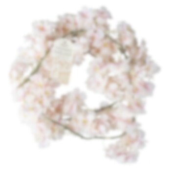 Tämä koristeellinen köynnös on koristeltu pienillä vaaleanpunaisilla kirsikan tekokukilla. Sen pituus on noin 1,8 metriä. Sopii pöydän kattaukseen juhlallisiin tilaisuuksiin.