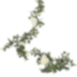 Kaunis köynnös juhliin tai häihin. Tässä köynnöksessä on eukalyptusoksia jotka on koristeltu valkoisilla ruusuilla.