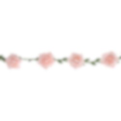 Kaunis koristeköynnös jossa on vaaleanpunaisia ruusuja ja pieniä vihreitä lehtiä.