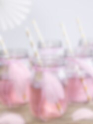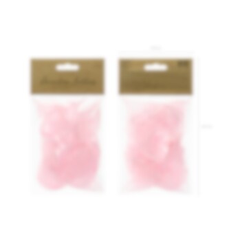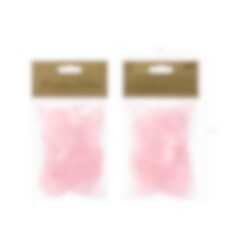 Pakkaus kauniilla koristehöyhenillä mattaisessa pastellinsävyisessä vaaleanpunaisen värissä. Koristele pöytä näillä ennen juhlia ja saat extra wow-reaktion. Pakkaus sisältää 3 grammaa.