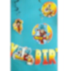 5 kpl. riippuvia koristeita erilaisilla hienoilla Dragon Ball -kuvioilla. Koristeet ovat 60 cm pitkiä ja kuviot ovat noin 17 cm kokoisia.