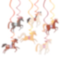 Luo tunnelmaa näillä ihanilla riippuvilla koristeilla, joissa on värikkäitä hevosia! Täydelliset hevosjuhliin tai tallille. Koristeet ovat noin 85 cm pitkiä ja hevoset ovat noin 16-18,5 cm kokoisia. Valmistettu pahvista.