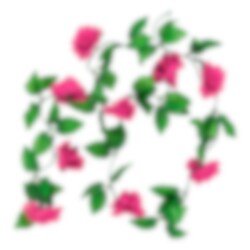 Keinotekoinen kukkaköynnös jossa on vihreitä lehtiä ja kauniita vaaleanpunaisia ruusuja.