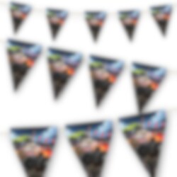 Hieno lippuviirinauha pahvista. Upea Monster Truck -kuviointi – täydellinen koriste vauhdikkaan tunnelman luomiseen juhlatilaan. Viirinauha on noin 3 metriä pitkä ja jokainen viiri on noin 24,5 cm korkea.