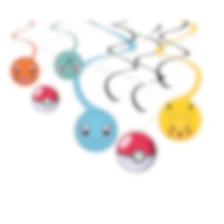 6 kpl. erivärisiä riippuvia koristeita upeilla kuvilla Pokémonin tunnetuimmista hahmoista. Koristeet ovat noin 60 cm pitkiä ja niissä on kuvioita molemmilla puolilla. Ne on valmistettu pahvista.