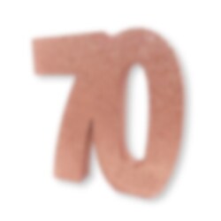 Erittäin kaunis ja vaikuttava ruusukultainen pöytäkoriste. Koriste on numeron 70 muotoinen. Keskipiste juhapöytään 70-vuotisjuhliin. Koriste on 19,5 x 20 cm kokoinen.