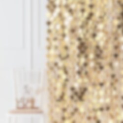 Kultainen taustaverho sydämillä, 100 x 250 cm.