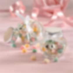 12 pientä söpöä lasipurkkia, joihin voit laittaa karkkia tai muuta kivaa juhlia varten. Lasipurkit ovat n. 5 cm korkeita ja pestään ainoastaan käsin.