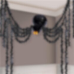 Koriste hunajakenno-materiaalia, joka esittää suurta mustaa hämähäkkiä 8 roikkuvalla jalalla. Koristele katto tai seinät tällä, ja saat erittäin makean efektin Halloween-juhlintaan. Hämähäkki on n. 11 x 21 cm ja käsivarret ovat 75 cm pitkiä.