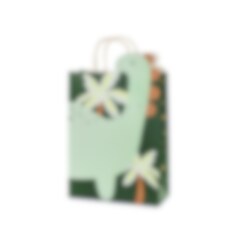 Lahjakassi, joka erottuu edukseen kauniilla dinosaurusteeman designilla. Pussissa on kaksi kahvaa ja se on valmistettu paperista. Koko 10 x 37 x 24 cm.