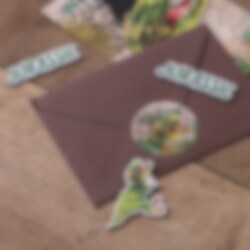 Pakkaus sisältää 16 tarraa jaettuna neljälle tarra-arkille. Tarrojen halkaisija on n. 5 cm