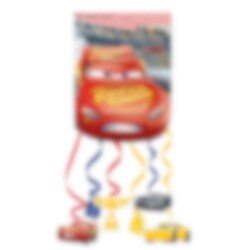 Yksinkertainen pinata, joka sisältää Disney Cars 3 -autojen salamakuvion. Täytä pinata erilaisilla makeisilla ja pienillä leluilla. Tämä tuote on jousilla varustettu pinata, joka aukeaa oikeasta narusta vetämällä jolloin kaikki yllätykset putoavat ulos. Pinata myydään ilman sisältöä, ja sen koko on noin 21 x 27 cm.