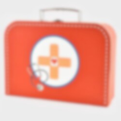 Tämä yksityiskohtainen lääkärinlaukku on 25 x 18 cm kokoinen ja sisältää 14 osaa pienelle lääkärille. Täydellinen lapsille, jotka rakastavat leikkiä lääkäriä ja hoitaa pehmolelujaan tai nukkejaan. Hauska ja opettavainen lelu, joka kannustaa luovaan roolileikkiin.